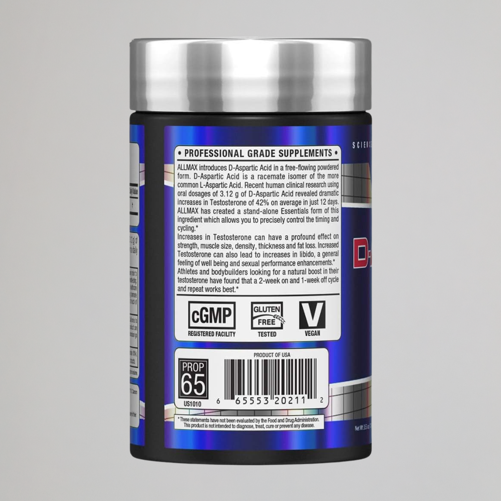 Athletes and bodybuilders have found that cycling Aspartic Acid, with a 2-week on and 1-week off schedule, helps optimize its effects while preventing the body from adapting to the supplement. This cycle strategy has been shown to maximize testosterone production, allowing for consistent gains over time.