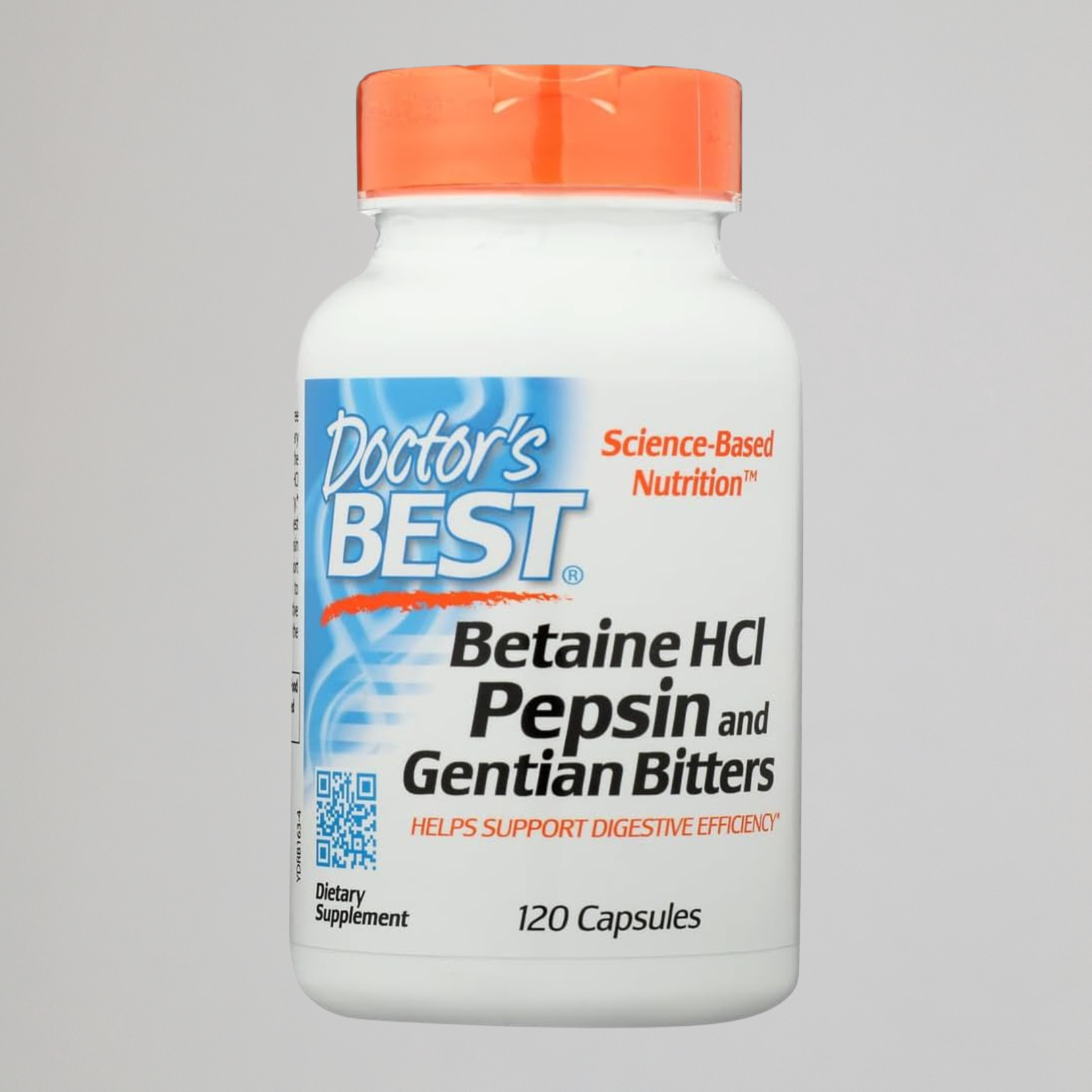 Doctor's Best Betaine HCI Pepsin & Gentian Bitters, Digestive Enzymes for Protein Breakdown & Absorption, Non-GMO, Gluten Free, 120 Caps,...