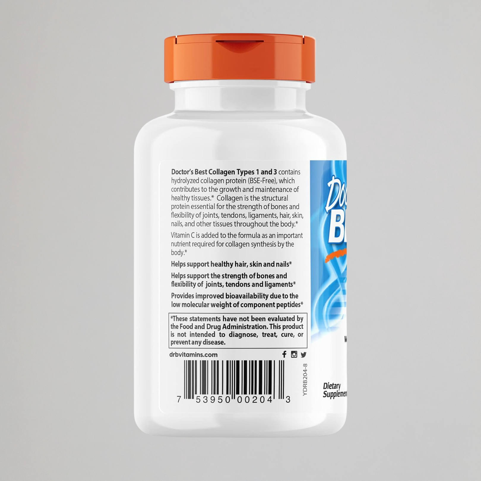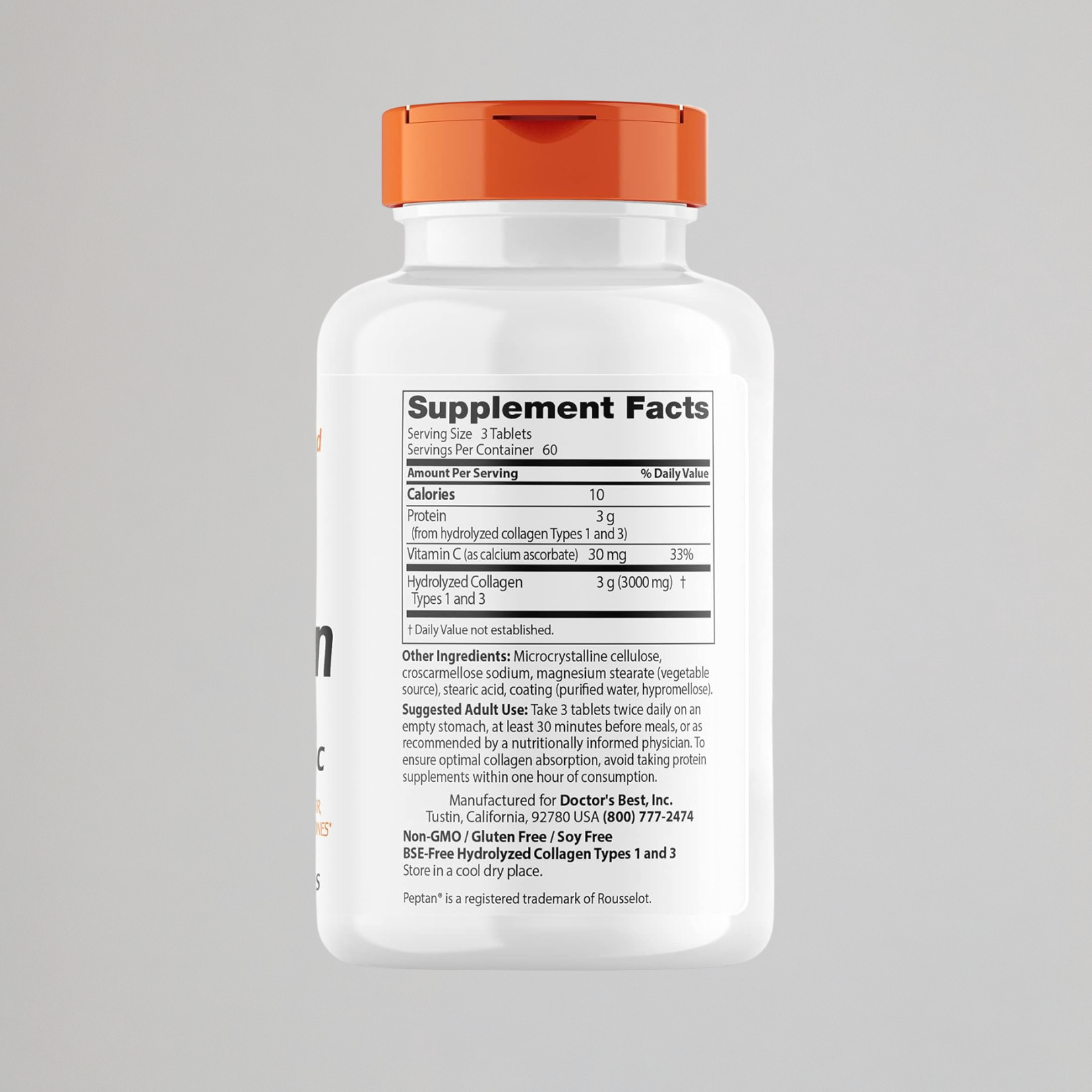 Doctor's Best Collagen Types 1 & 3 with Peptan, Non-GMO, Gluten Free, Soy Free, Supports Hair, Skin, Nails, Tendons & Bones, 1000 mg, 180 Tablets